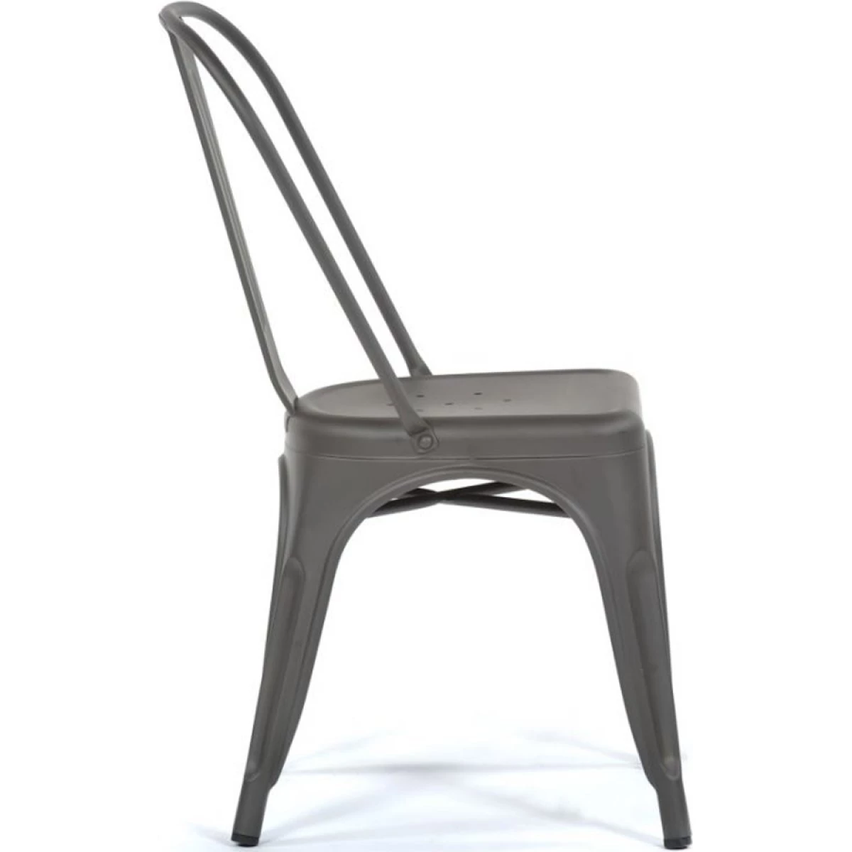 Take your modern restaurant, cafe, or bistro to the next level with this metal indoor industrial cafe chair with vertical slat back and drain hole seat. Made with a steel construction, it has received an e-coating to seal it against rust. This treatment was followed with a white powder coating to further enhance durability so you can rest assured that this cafe chair is sure to withstand years of use. The frame is reinforced with additional under-seat cross bracing to provide strength and stability without adding extra bulk or weight to this sleek design. It’s lightweight enough for easy movement and transportation so you can quickly reconfigure your dining space and easily clean up at the end of the night. It can even be stacked to maximize storage space if need!