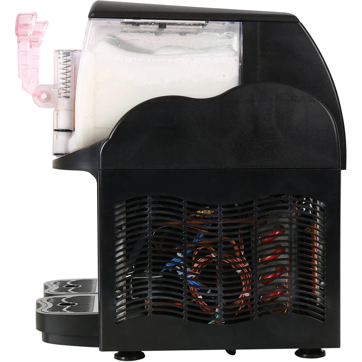 Designed with two three litre tanks, this slush machine lets you serve multiple flavours at once. The slush machine is made with a powerful cooling system that allows you to start serving drinks from as little as 40 minutes after activation – allowing you to serve guests faster. The digital display, electronic temperature and speed controls all aid in making the setting-up process easier, whilst allowing you to customise settings to serve anything from chilled drinks to ice-cold slush. Crafted from a mixture of stainless steel and APS plastic, the slush machine is highly durable and easy to clean after use. As well as this, both tanks and dispensing nozzles can be individually removed and thoroughly cleaned – helping to maintain a hygienic service.