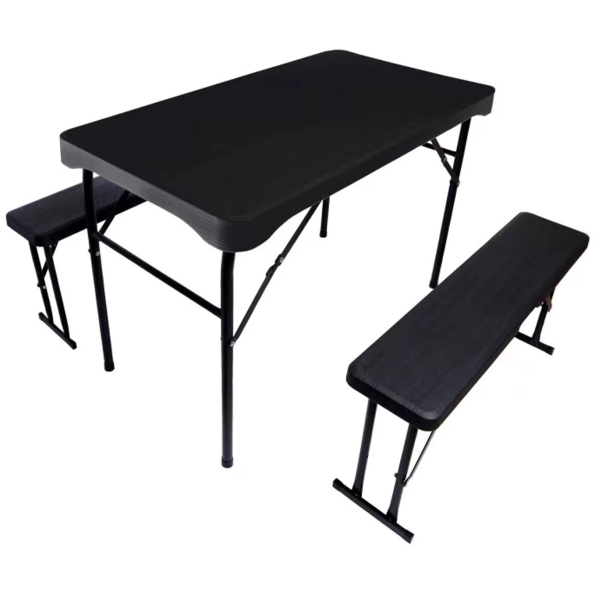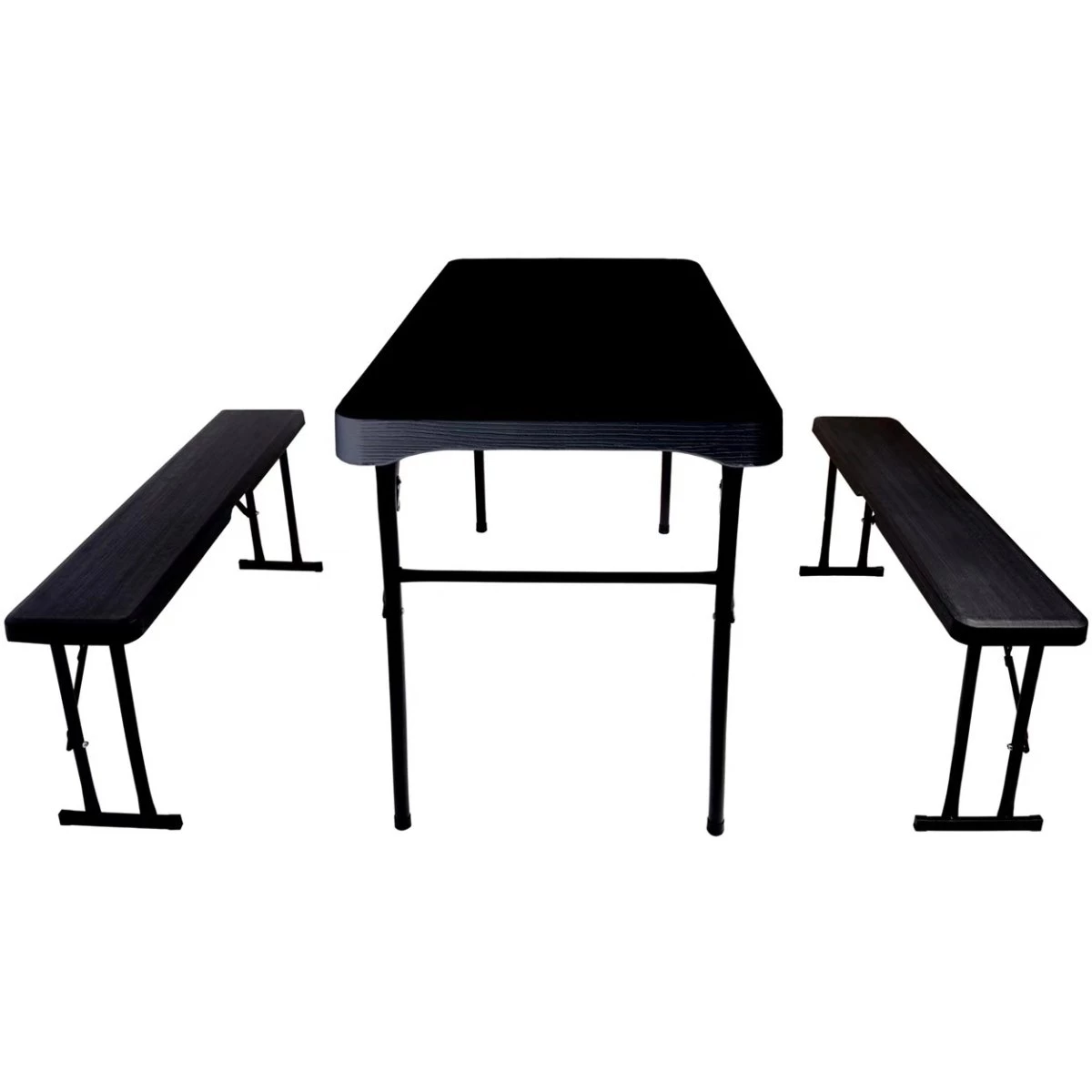 Perfect for camping, barbeques, picnics, festivals, this wood grain table and benches set provides you plenty of space and comfort for any celebration or occasion.Â