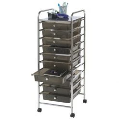 10 Drawer Mobile Storage Trolley Black & Chrome 395x390x980mm | Adexa G131