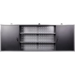 Professional Grey And Black Wall Mounted Double Door Tool Cabinet With Open Shelf/Rack And Key 1600x200x600mm | Adexa TC003A