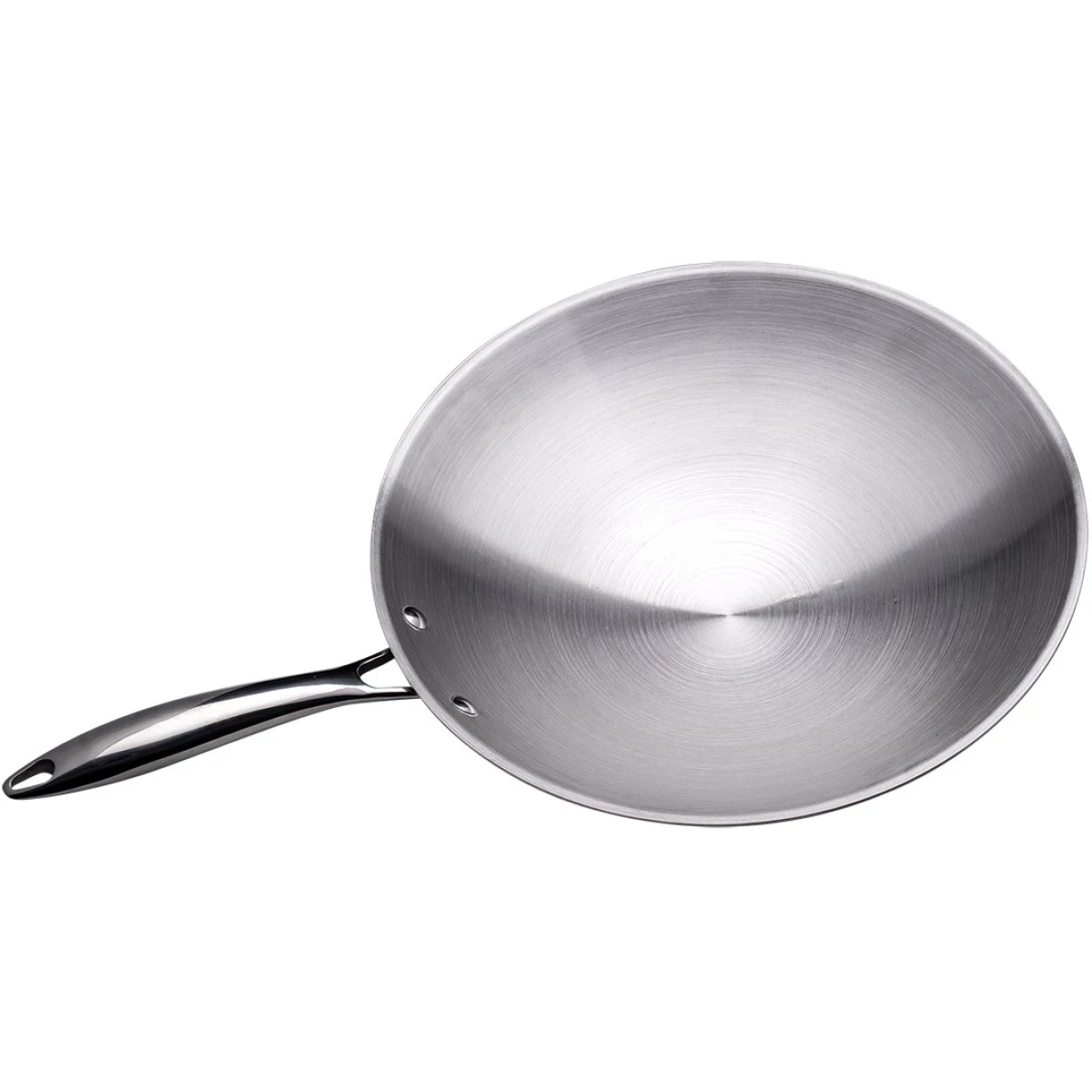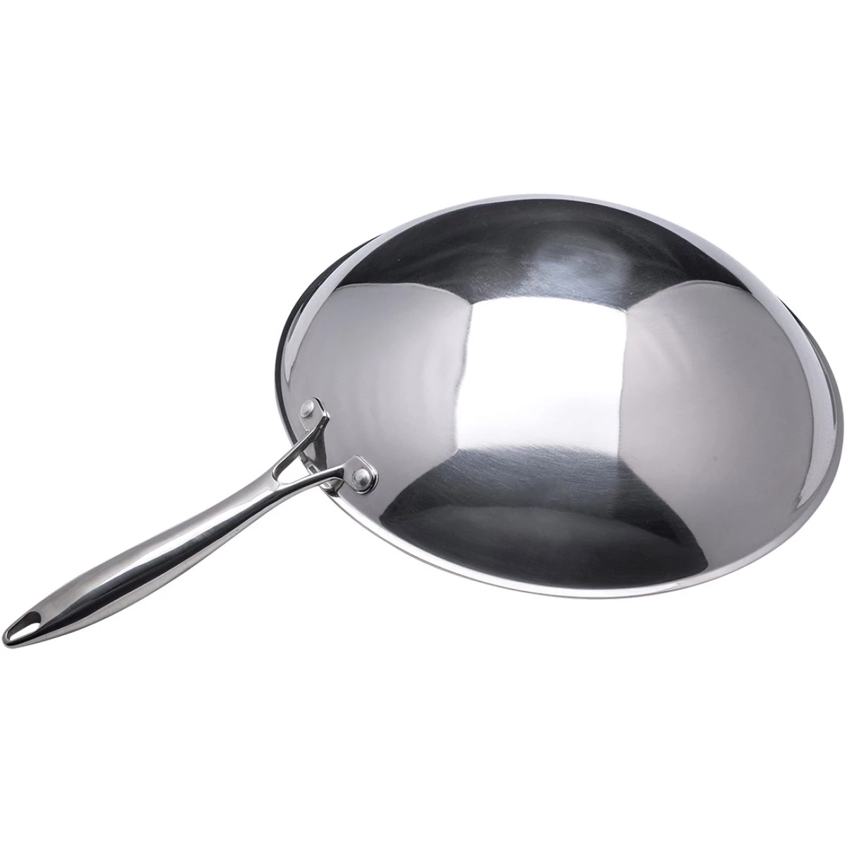 Manufactured from premium heavy duty stainless steel and aluminium in 3 layers (stainless steel-aluminium-stainless steel) , this commercial wok pan is built to last. Extreme heat resistance and compatibility with all heat sources.