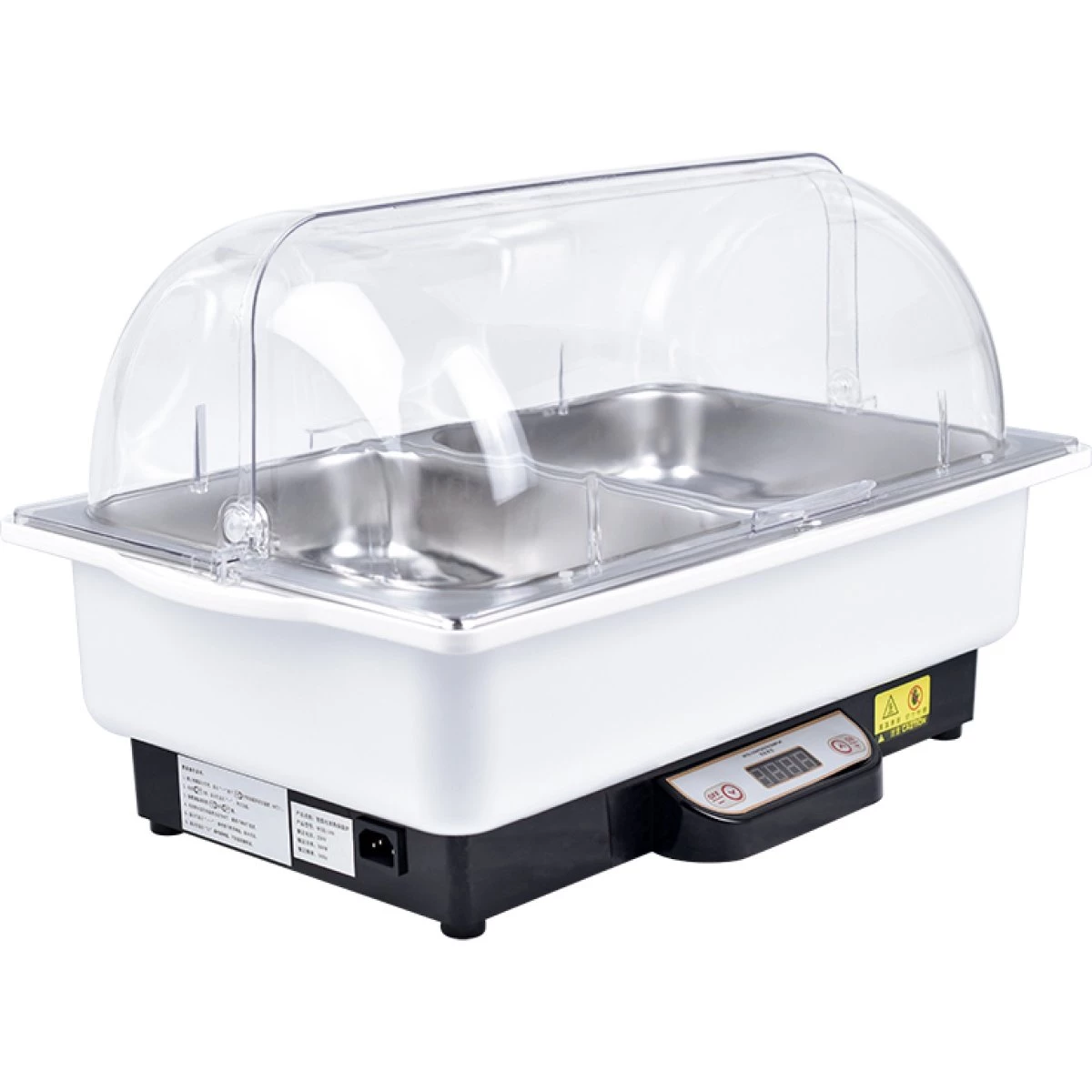 Make sure your catering food stays warmer for longer with this commercial electric chafing dish. Perfect for keeping your food at serving temperature in buffets, professional roll top chafing dishes offer portable and convenient heating. With a wet heat operation, it comes supplied with stainless steel water and food pans. Made from easy-to-clean stainless steel to save you precious time at the end of the evening.